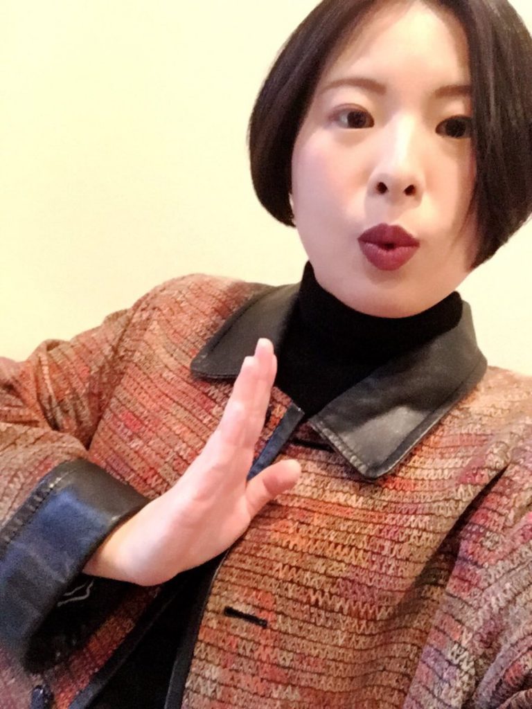 髪の毛ツヤツヤ! 大きいイヤリングつけて、似合う