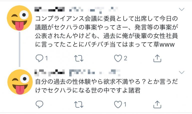もしくはセクハラなんて勝手に女が騒いでるだけとか思っていそう— (@abymyk) 2:29 – 2019年1月22日