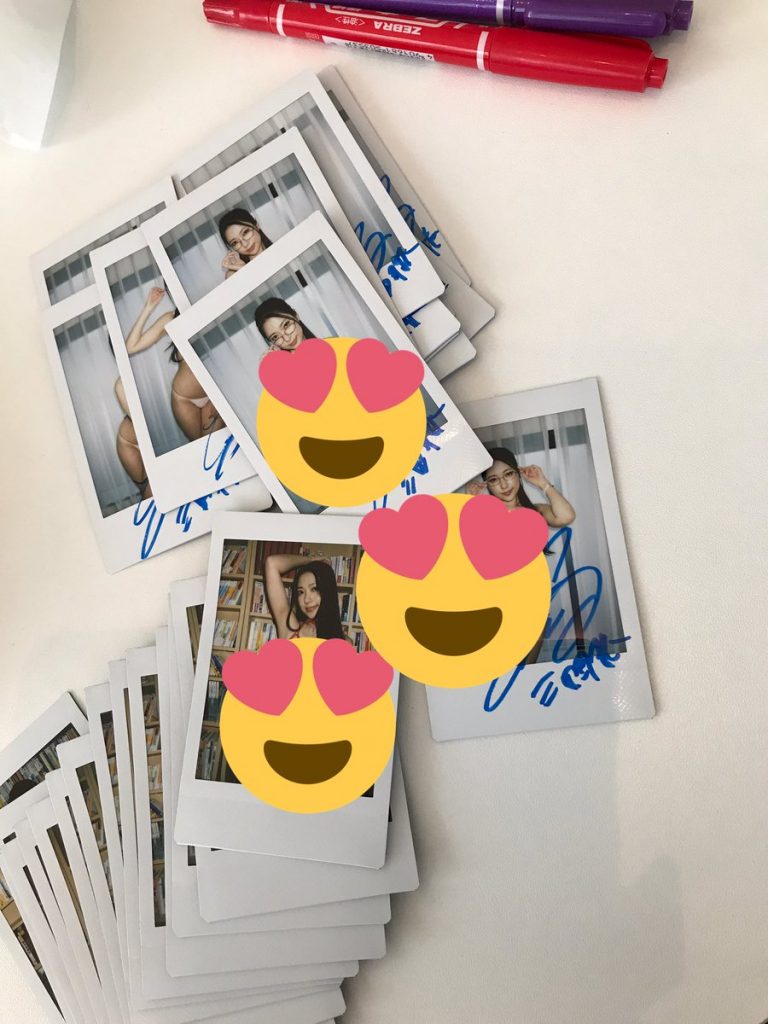 朝から特典用のチェキにサインを入れています