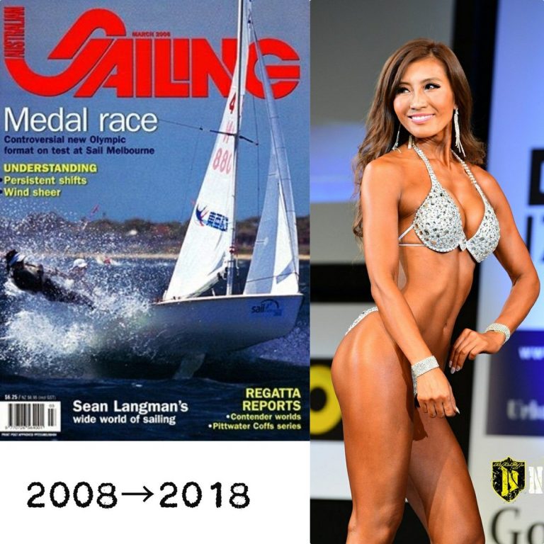 一年中レースで世界中回ってました。(オーストラリアで雑誌の表紙を飾った時の一枚)10年経った今はビキニの選手