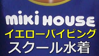 ミキハウスのワンピース型スクール水着。 首・肩・足回りにイエローのパイピング加工。 品番不詳 サイズ:B82 H85~93 ナイロン84%/ポリウレタン16% 品質表示者承認 …
