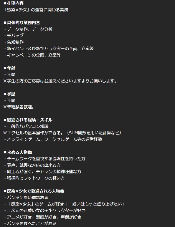 運営メンバーを募集しております!「感染×少女が大好き!」「ゲームをもっと面白くしたい!」
