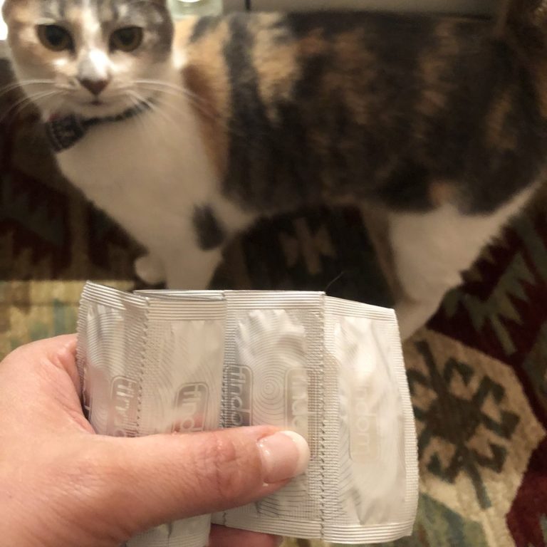 指用コンドームを取り出そうとすると、猫が寄ってくる件。