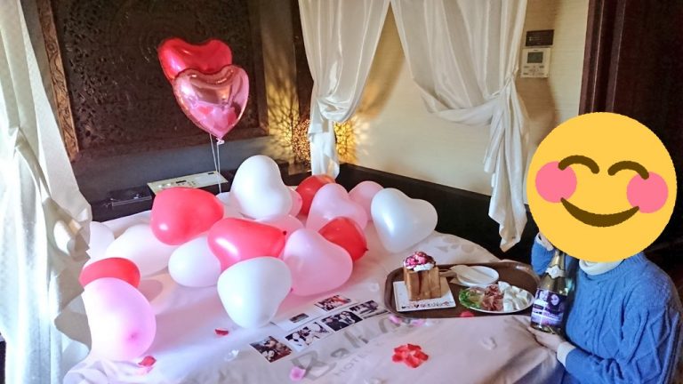 六時間で一万ちょいでバルーン装飾してくれました!ワイン、ハニトー込みで!露天風呂も岩盤浴も無料!サービスいっぱい
